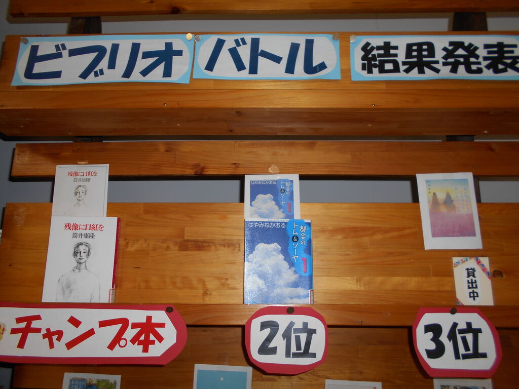202011月13 ビブリオバトル大会 はじめまして!中三の、ビブリオバトルコンビです。昨日、ビブリオバトル大会が開催されました!12人の参加者たちが、各々のおすすめの本について熱弁しました!それぞれとても個性豊かなプレゼンでライブ感もあり、聞いていて面白かったです!図書館内にビブリオバトルで紹介された本のコーナーを作っています!気になった方は是非借りて、読んでみて下さいね!どのプレゼンも本当に面白く、聞き応えがあって興味をそそられました。もし興味を持った方は、次回開催する時に参加してみるのもおすすめです! カテゴリなしの他の記事 コメント コメントフォーム 名前 コメント 記事の評価 リセット リセット 顔 星 情報を記憶 コメントを投稿する